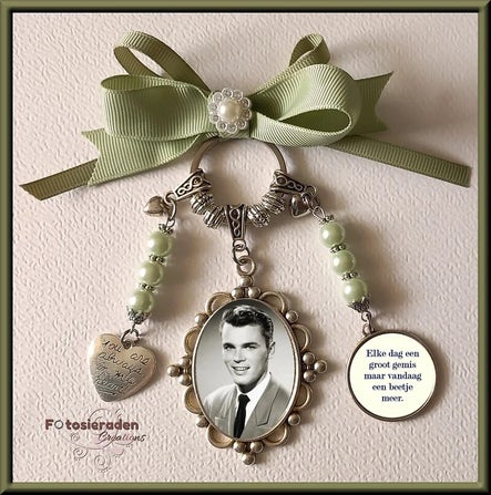Deze bruidsboeket hanger kan met een foto of tekst gemaakt worden €25.95