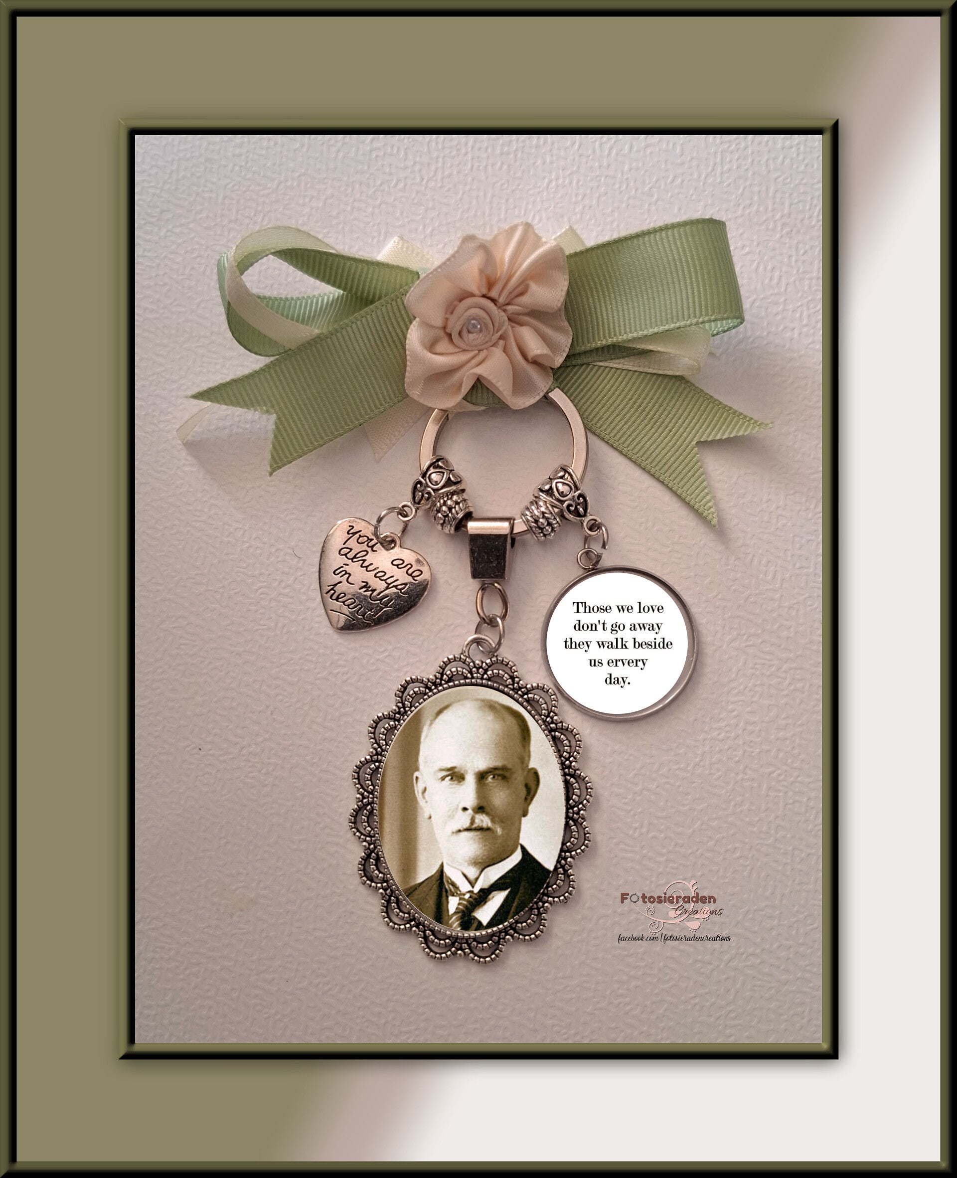 Met mijn handgemaakte bruidsboeket-fotohangers draag je die ene speciale persoon toch een beetje bij je.