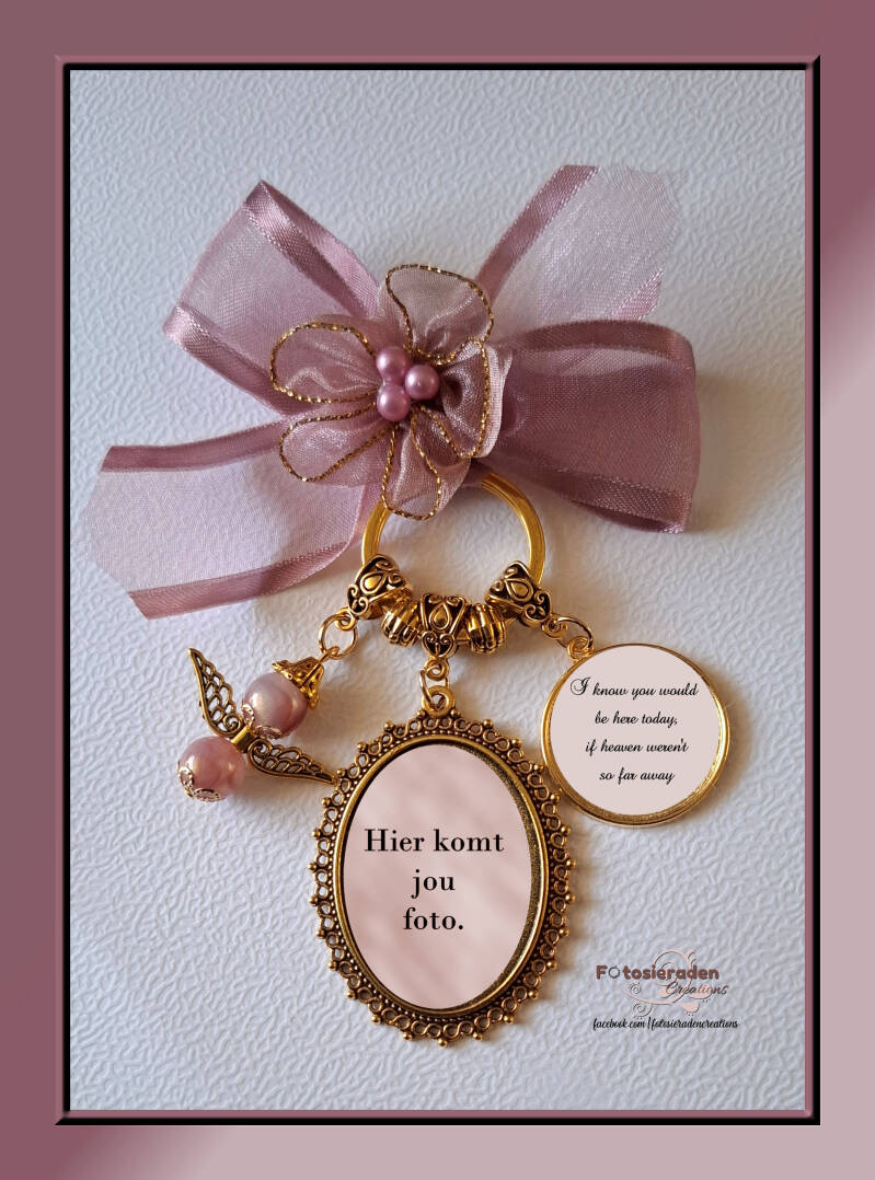 Bruidsboeket fotohanger roze en goudkleurig medaillon en toebehoren.
